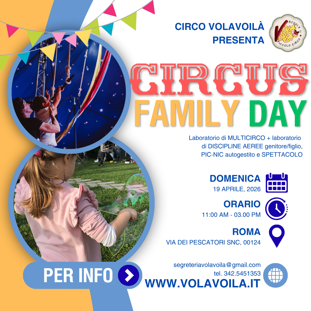 I nostri corsi di circo per bambini sono studiati per stimolare il sistema psicomotorio, curando, attraverso gli stimoli motori delle discipline circensi, lo sviluppo intellettivo, la propriocezione, l’autostima e la cooperazione. Grazie al VolaVoilà, il circo a Roma, non si limita solo agli spettacoli di intrattenimento ma diventa un universo in continua evoluzione, che aiuta piccoli e grandi a scoprire (e riscoprire) le proprie capacità.