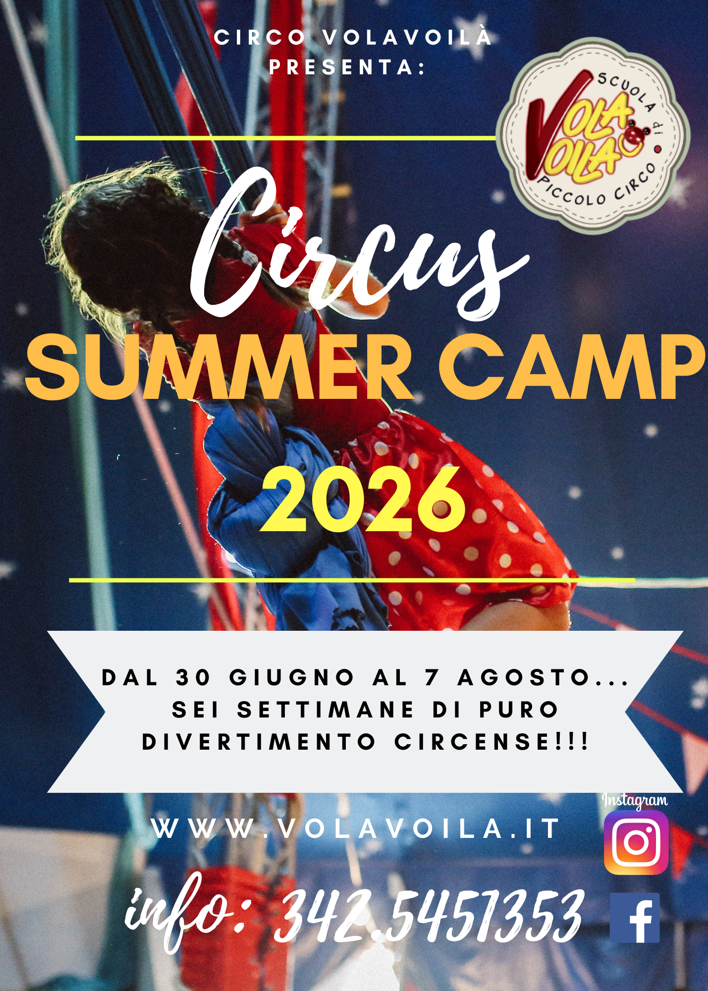 Vieni a trovarci sotto il cielo stellato del nostro Chapiteau per imparare a volare nella scuola di circo VolaVoilà!